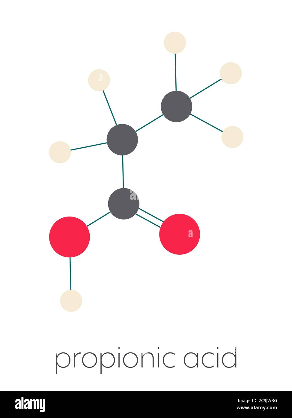 Propionsaure Propansaure Molekul Wird Als Konservierungsmittel In Lebensmitteln Verwendet Stilisierte Skelettformel Chemische Struktur Atome Werden Farbcodiert Dargestellt Stockfotografie Alamy